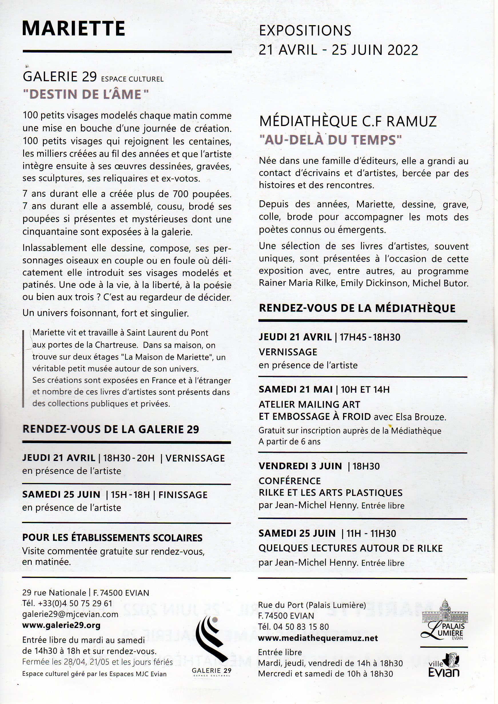Livres uniques d’artistes de Mariette avec Rainer Maria Rilke, Emily Dickinson, Michel Butor, Sylvie Fabre G.