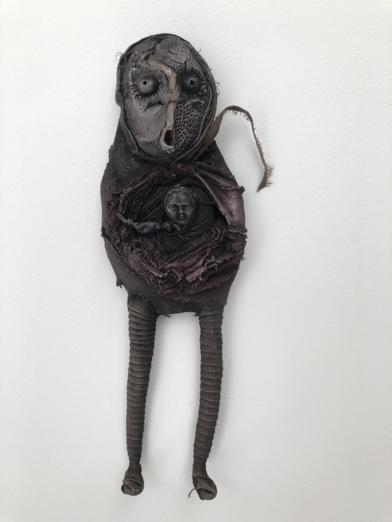 Par ses poupées, Mariette crée des femmes dont le corps jaillit sous ses bandelettes avec ses morceaux de Lucifer et d’Ange. Mais contrairement à ce qu’on pourrait penser le corps n’est plus supplicié, écorché.