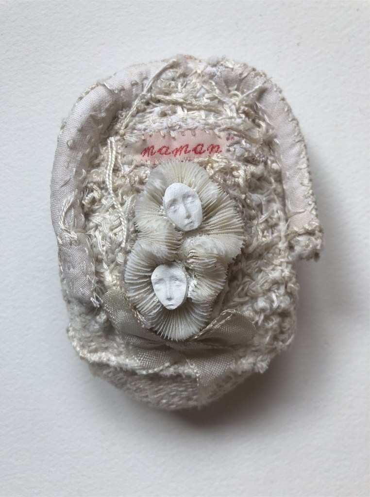 POUPÉE N°341 – Tissus – Coquillage – Broderie. 11 cm x 8 cm.