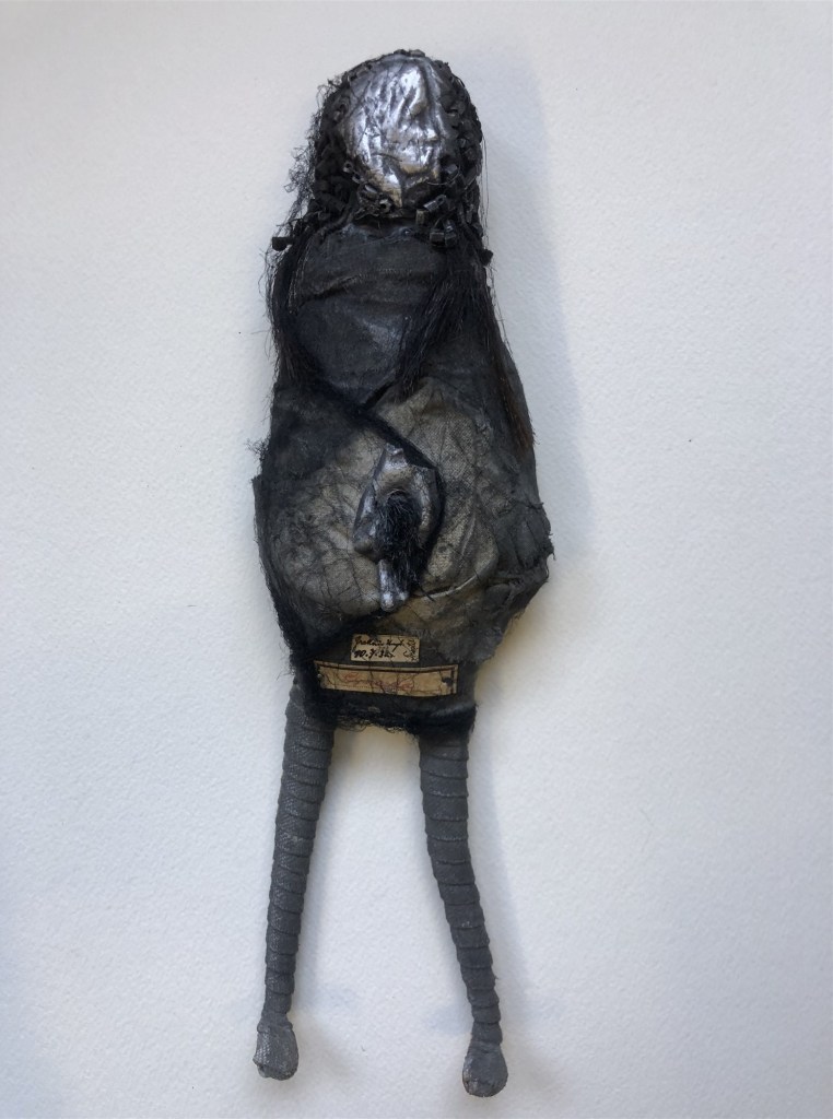 POUPÉE N°360 bis – Tissus – Céramique – Perles – Fer. 24 cm X 8 cm.