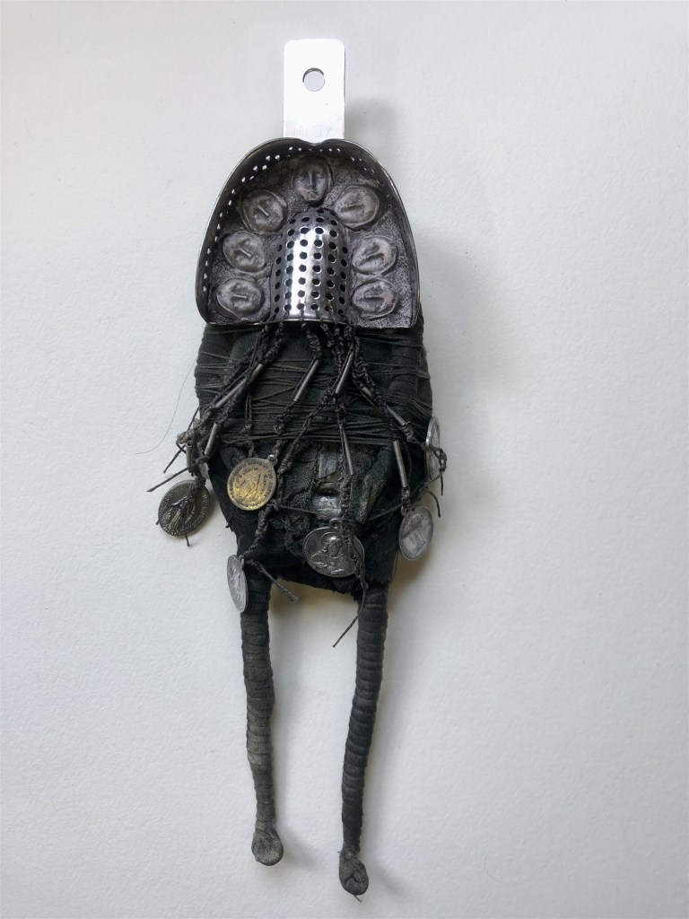 POUPÉE N°422 – Tissus – Moule dentaire – Céramique – Perle. 21 cm X 9 cm.