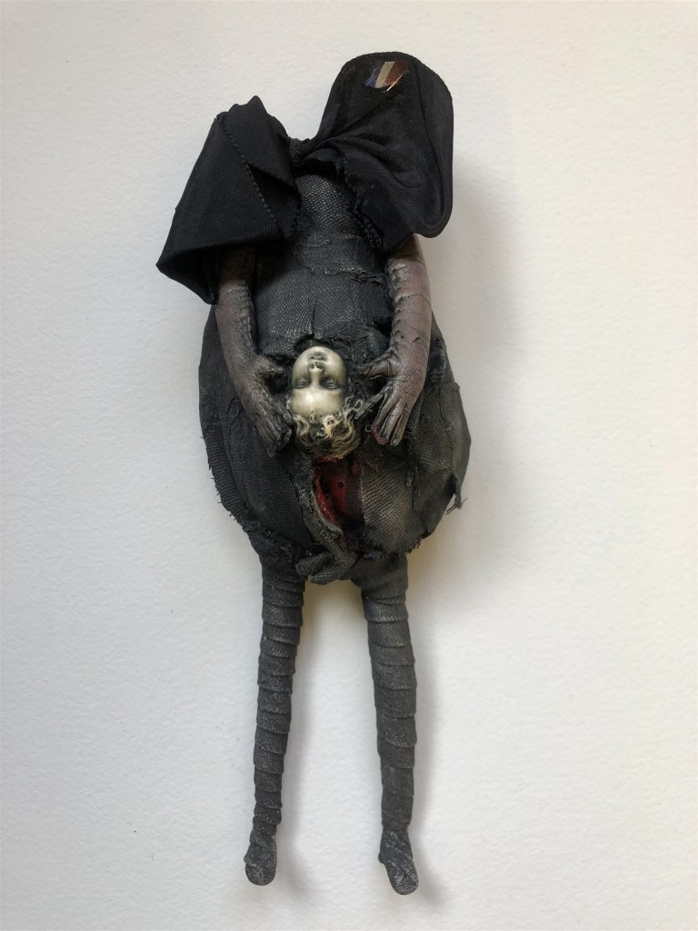 POUPÉE N°433 – Tissus – Mâchoire – Céramique. 27 cm X 8 cm.