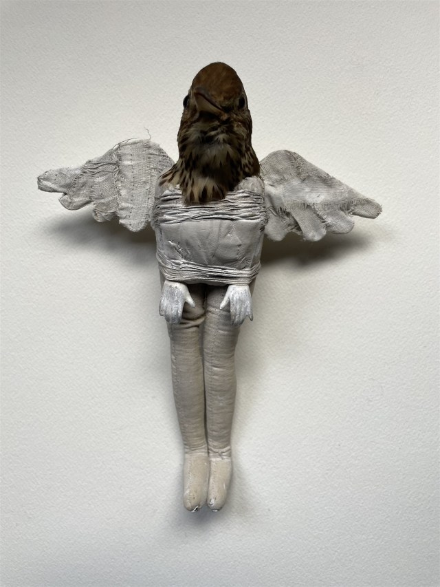 POUPÉE N°617 – Corps poupée ancienne – Céramique – Ailes d’oiseau. 25 cm x 30 cm