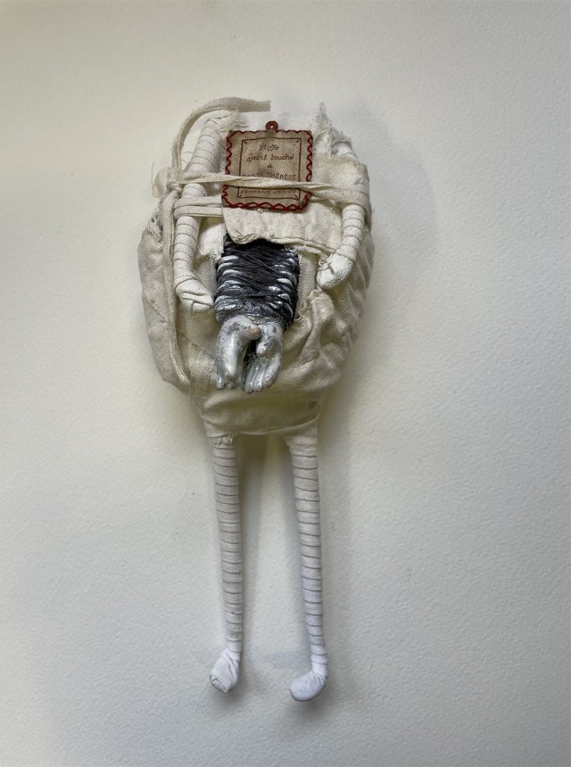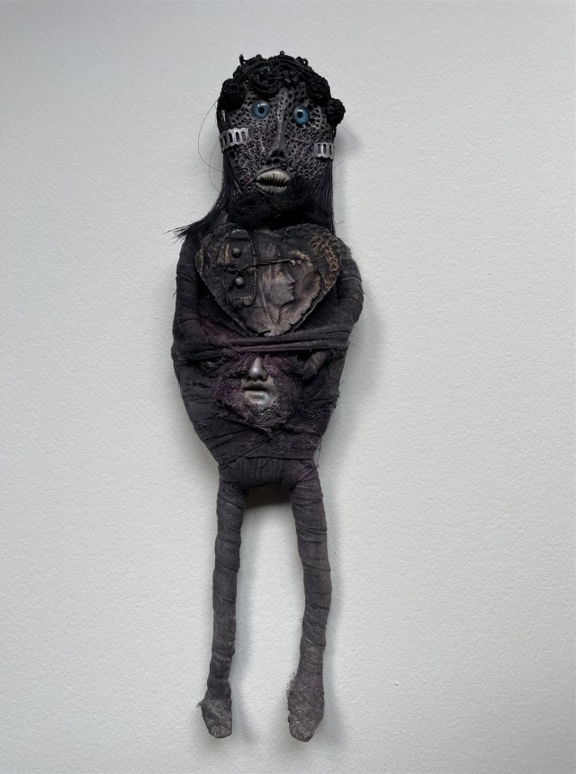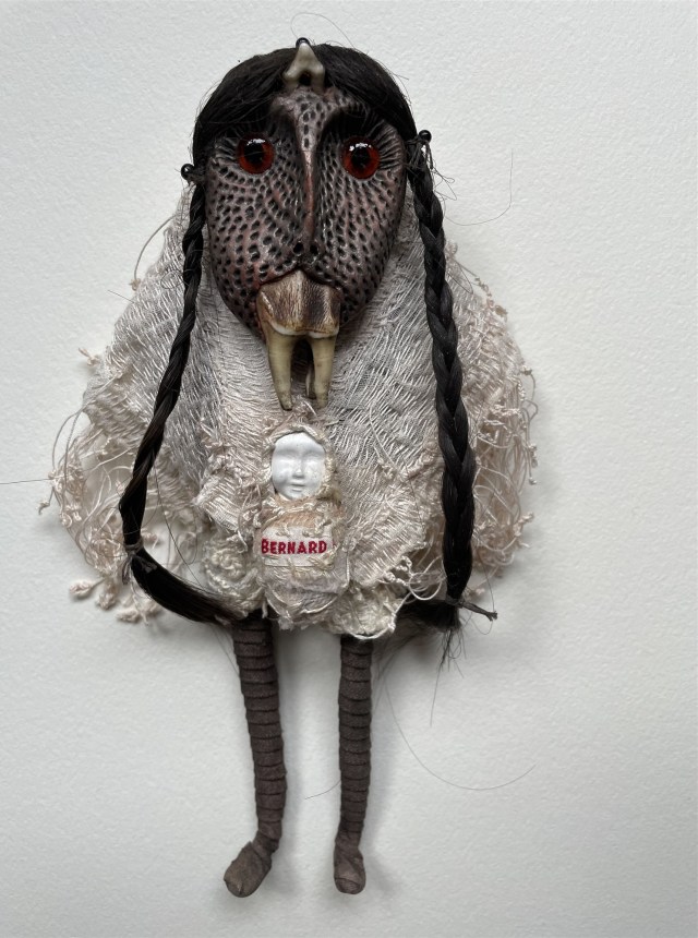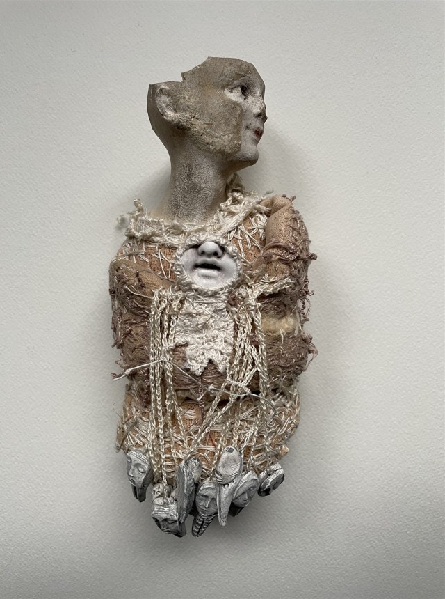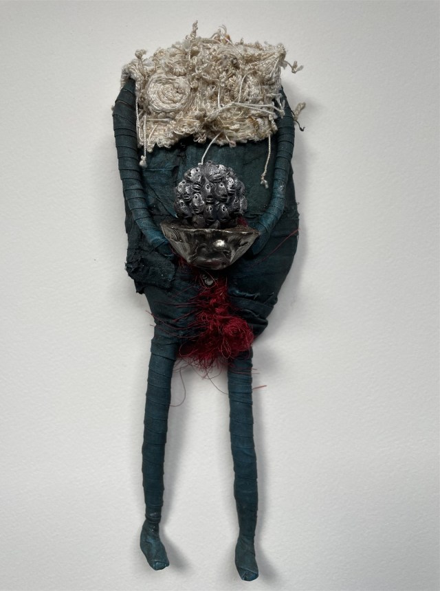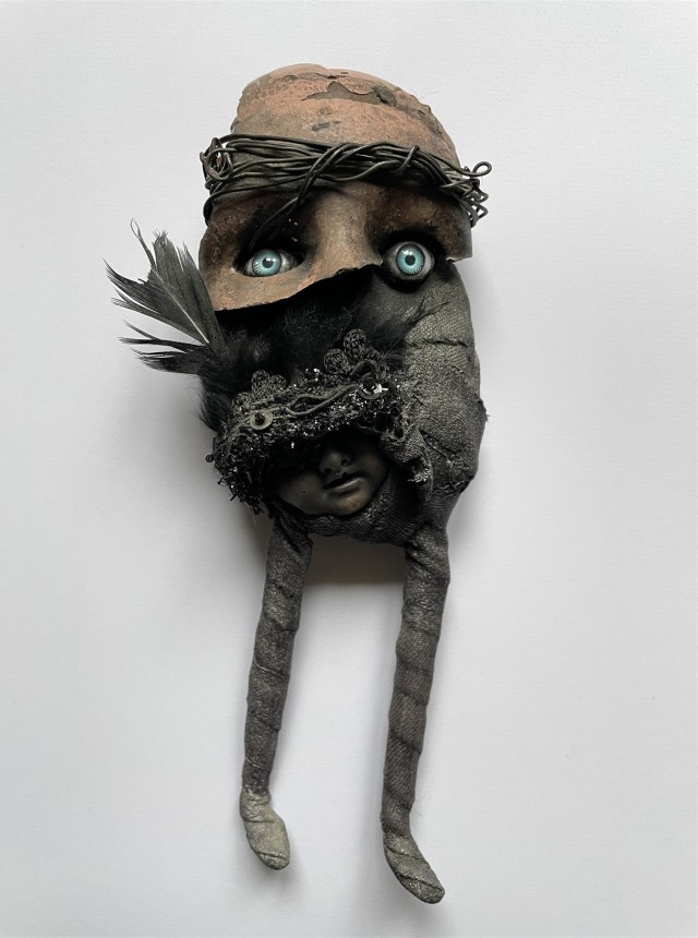 POUPÉE N°682. Tissus – Céramique – Pâte d’oiseau – Aiguilles. 22 cm x 19 cm.