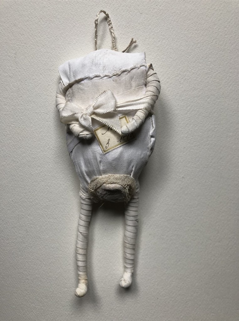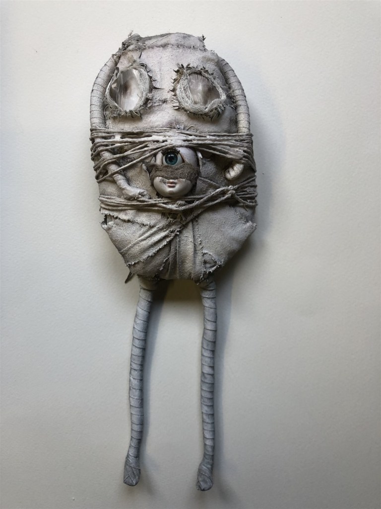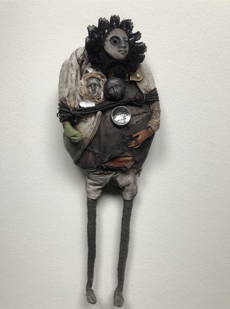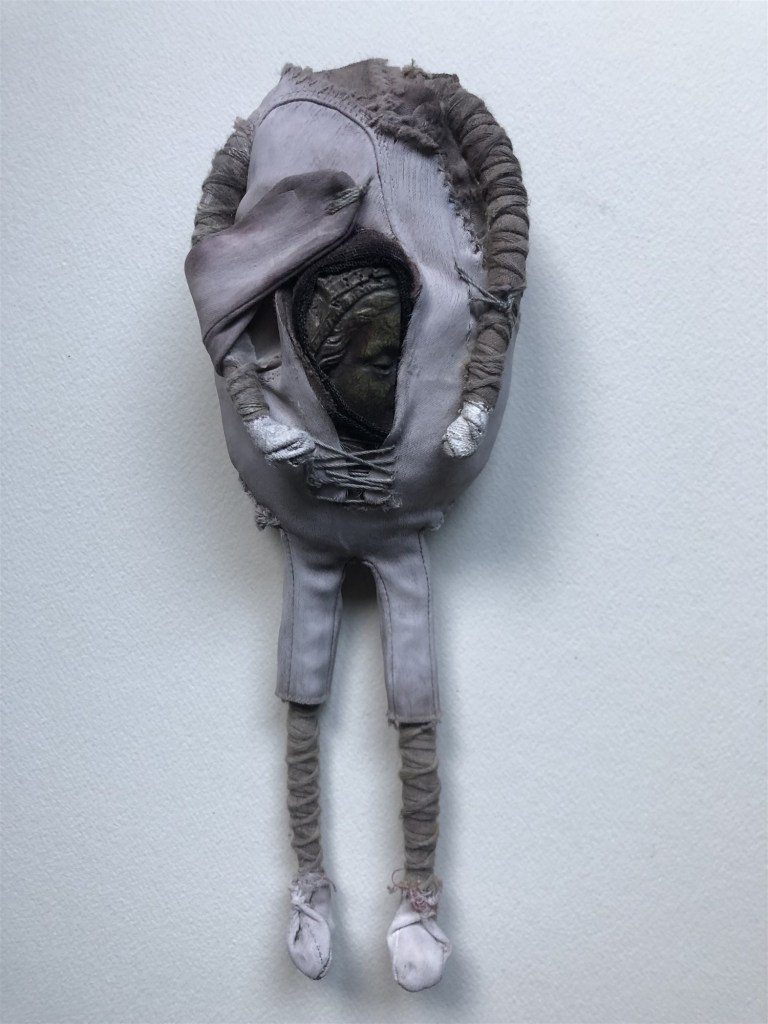POUPÉE N°113 – Tissus – Céramique – Main – Aiguille. 30 cm X 9 cm.