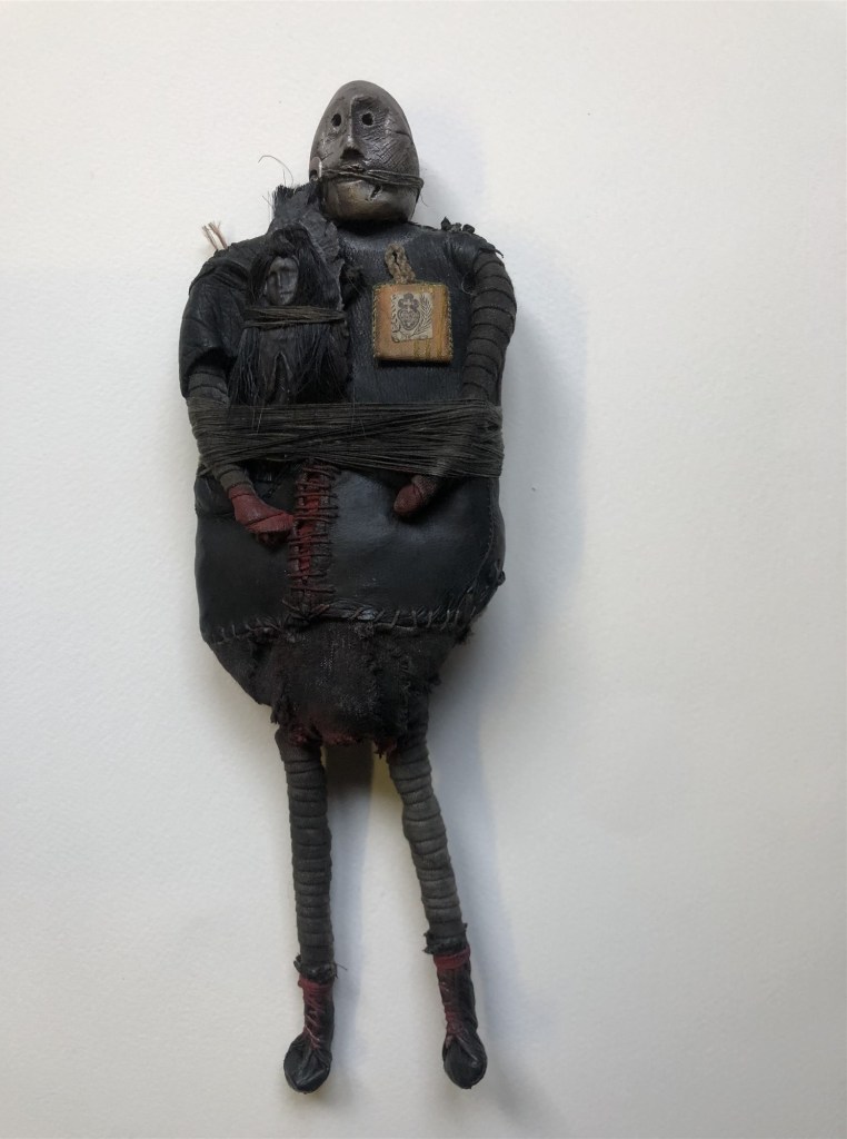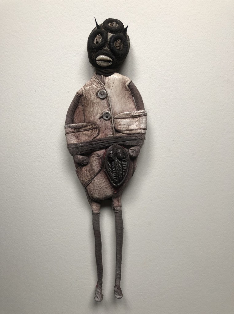 POUPÉE N°165 – Tissus – Cuir – Céramique. 21 cm X 8 cm.