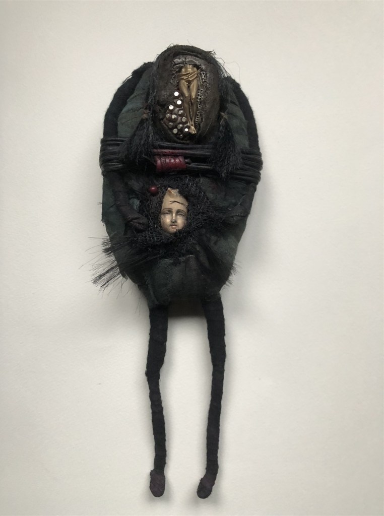 POUPÉE N°139 – Tissus – Ronces – Perles. 17 cm X 11 cm.