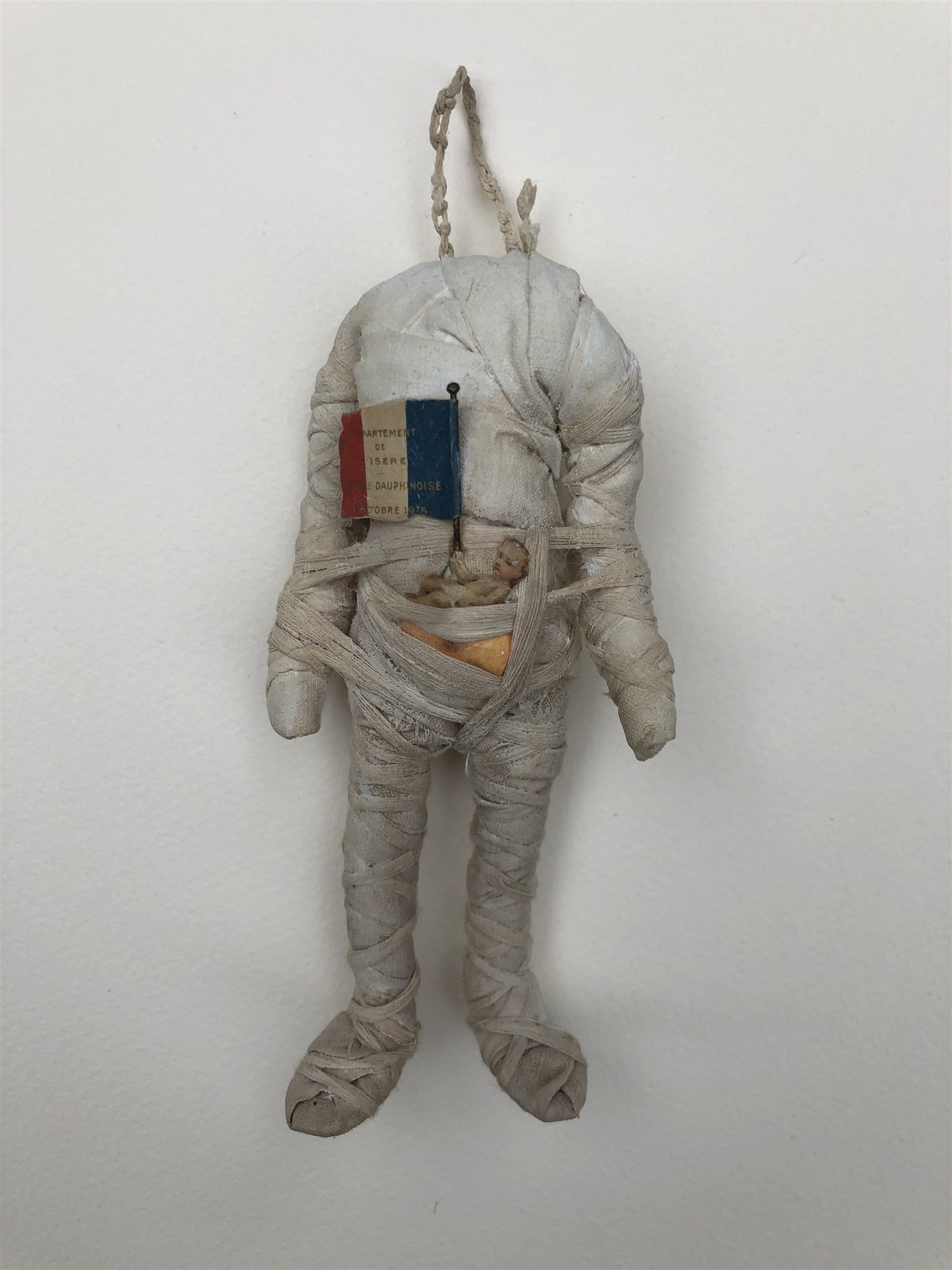 POUPEE N° 1 ← Précédent Suivant → POUPÉE N° 1 – Tissus – Petit drapeau département de l’Isère – Journée Dauphinoise – Chromo – 14 cm X 7,5 cm.