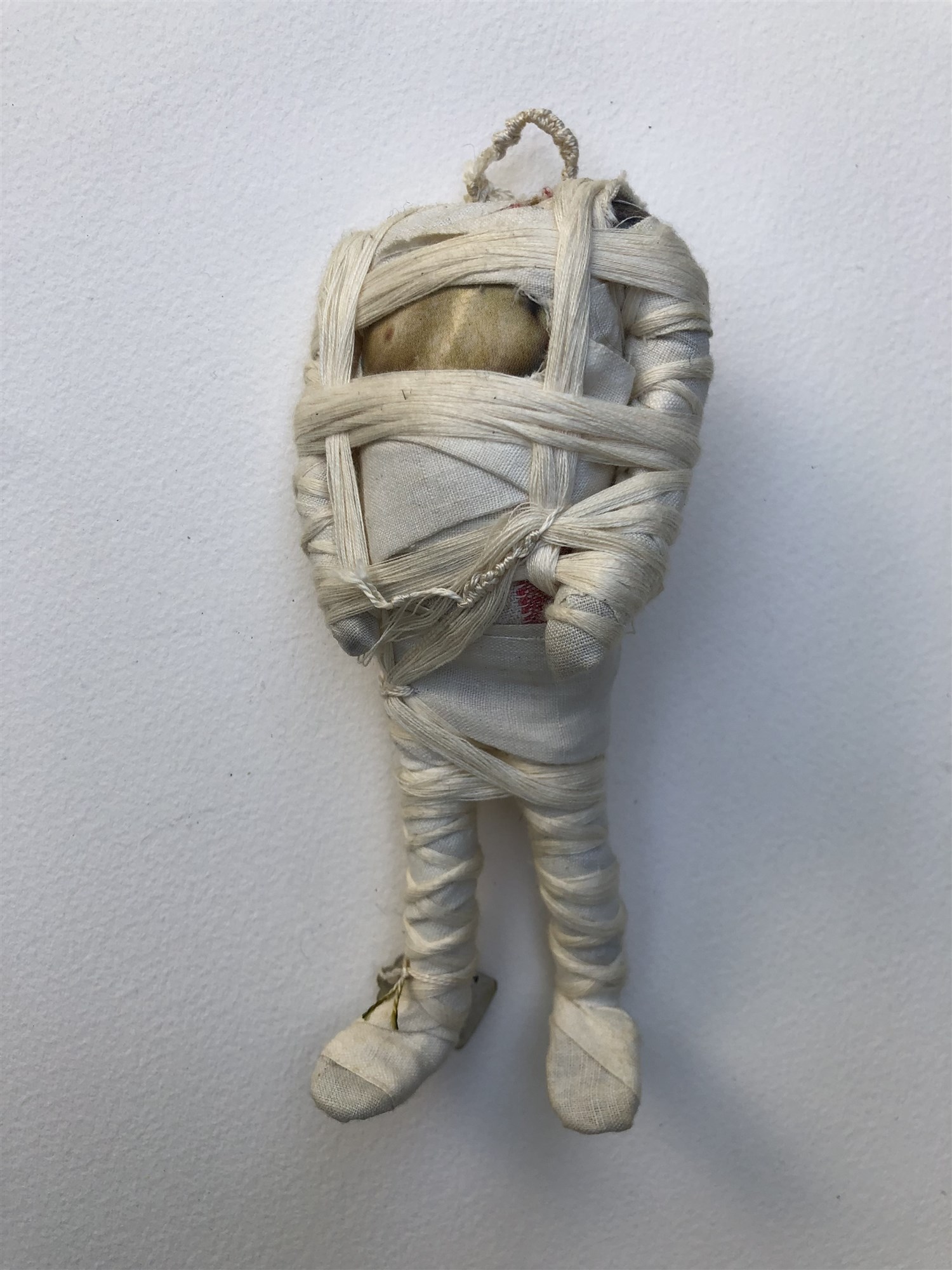 POUPÉE N° 23 – Tissus – Photo – Ficelle – 16 cm X 8 cm.